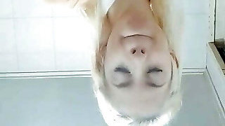 A marvelous platinum-blonde teen from Germany gets her throat filled with warm cum