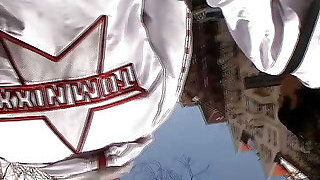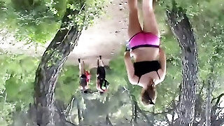 2 German lesbians licking each others shaved pussies outdoors