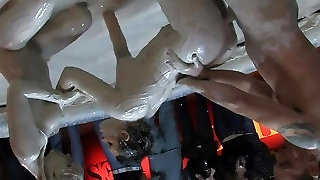 Hardcore Mud Wrestling With Two Hot Babes