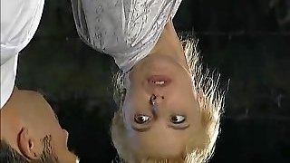 Pale skin blonde girlfriend tries not to sob while I fuck her asshole