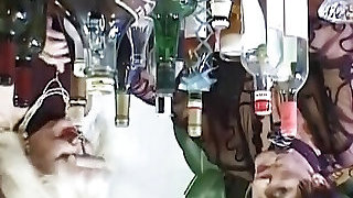 A sexy German granny and nubile getting their holes torn up by three cocks