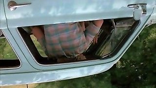 Sex hungry wealthy lady rides staff penis of her driver on back seat of the van