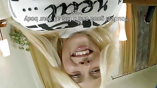 Cute sweet French blonde doll voluptuously licks the tip of the dick