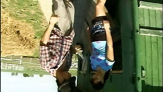 Saucy blonde German girl gets in the barn and has fuck-a-thon