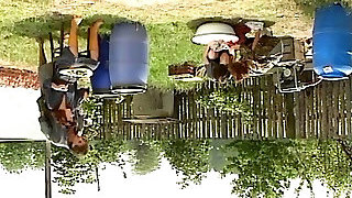 A super busty German brunette gets her gash hammered outdoors