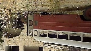 Husband watching wife gangbanged in restaurant and ass fucking in Bus