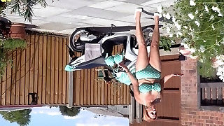 Sexy redhead takes a big hard pecker outdoor