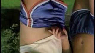 Big boobed sporty blond cheerleader gets her ass nailed with money-shot on stomac
