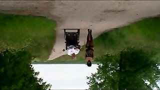 Vintage lady's outdoor kinky undergarments and masturbation show - including seamed nylon stocking and vintage panties.