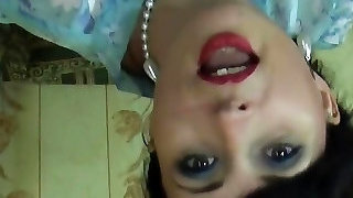 Fine pale skin huge-titted bony babe in blue stockings rides dick